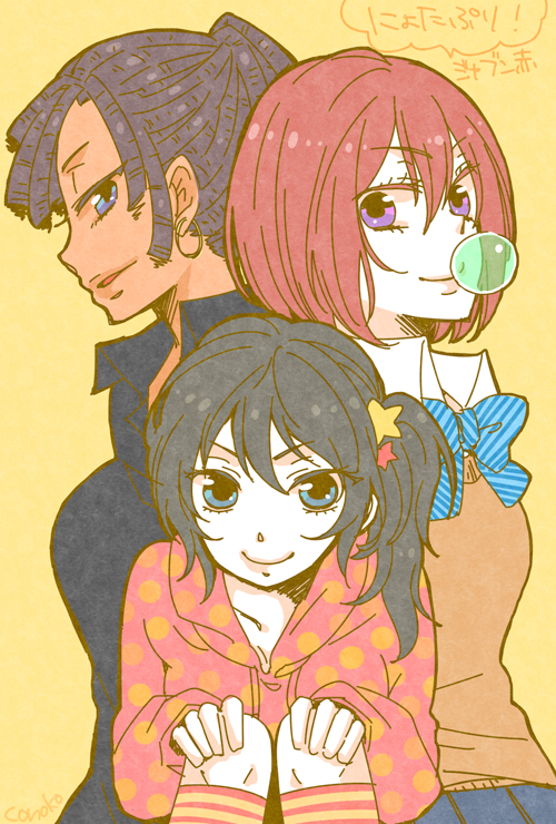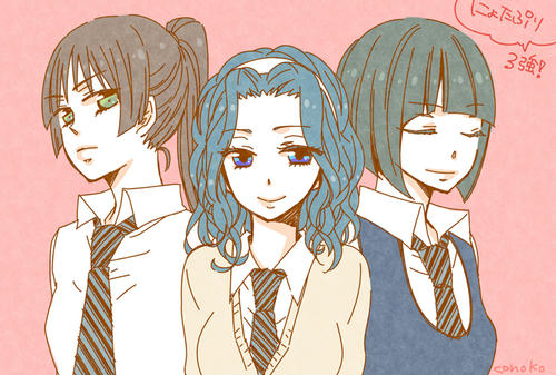 この三人はいつも一緒につるんで100均とかに行ってそう。あとプリクラ。